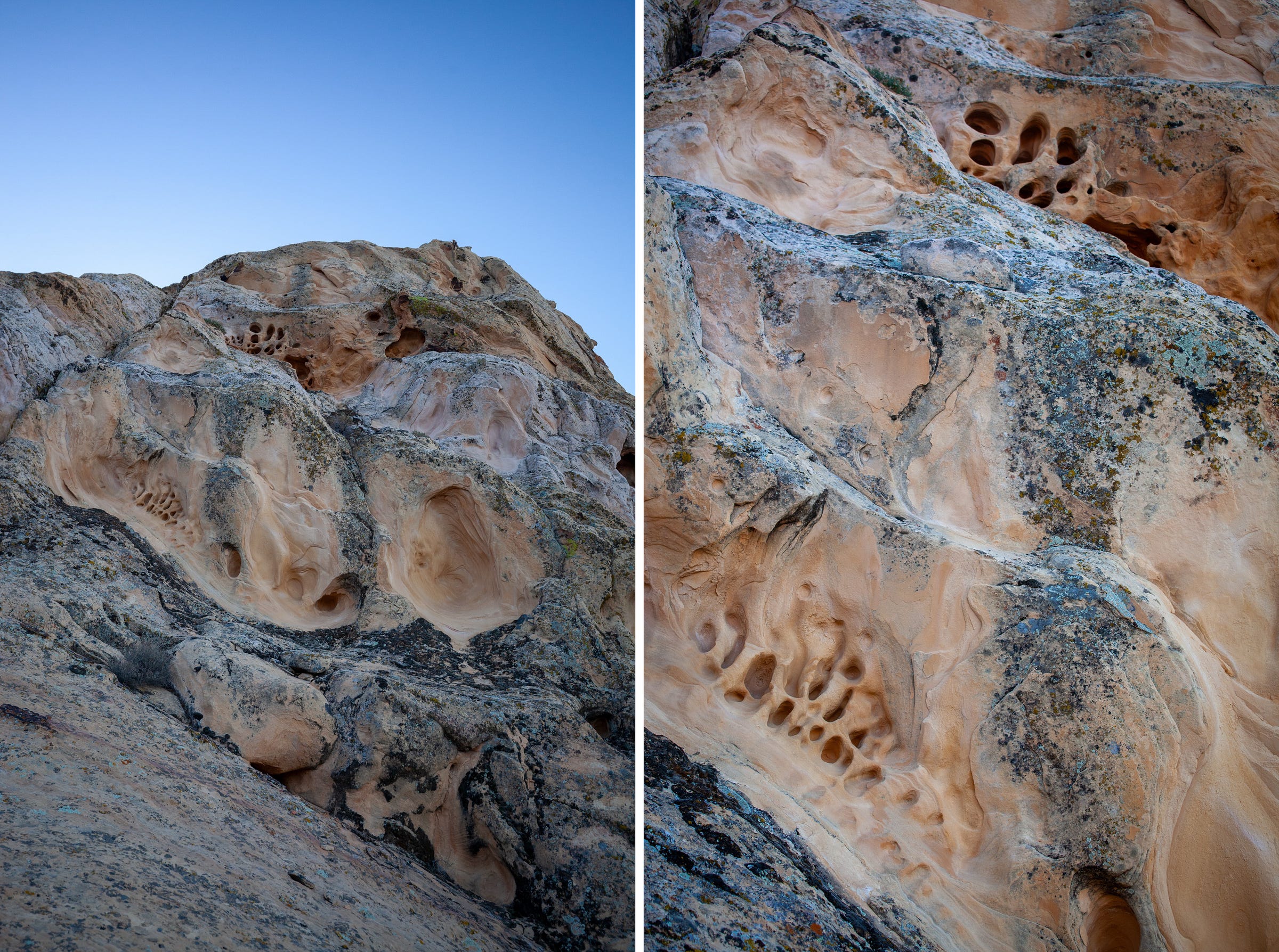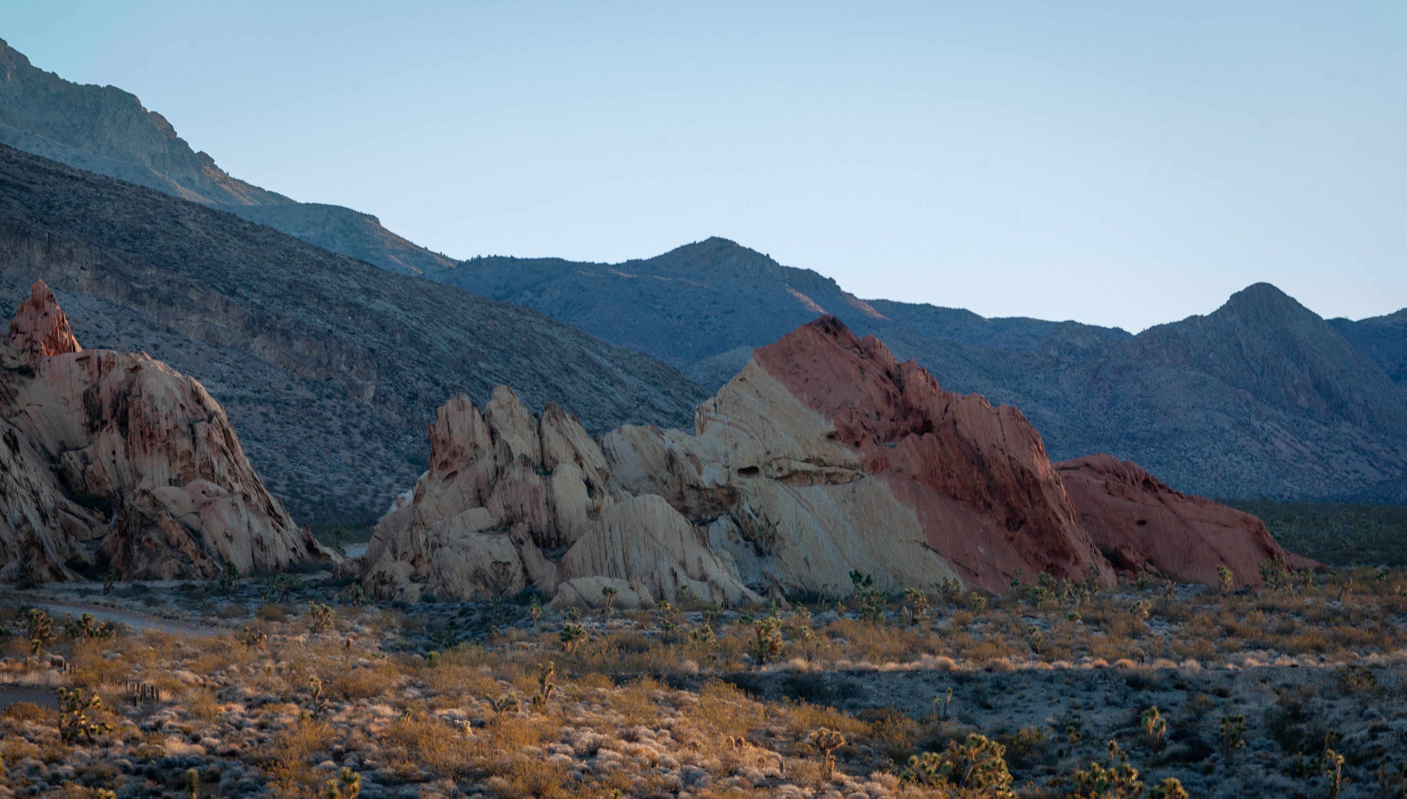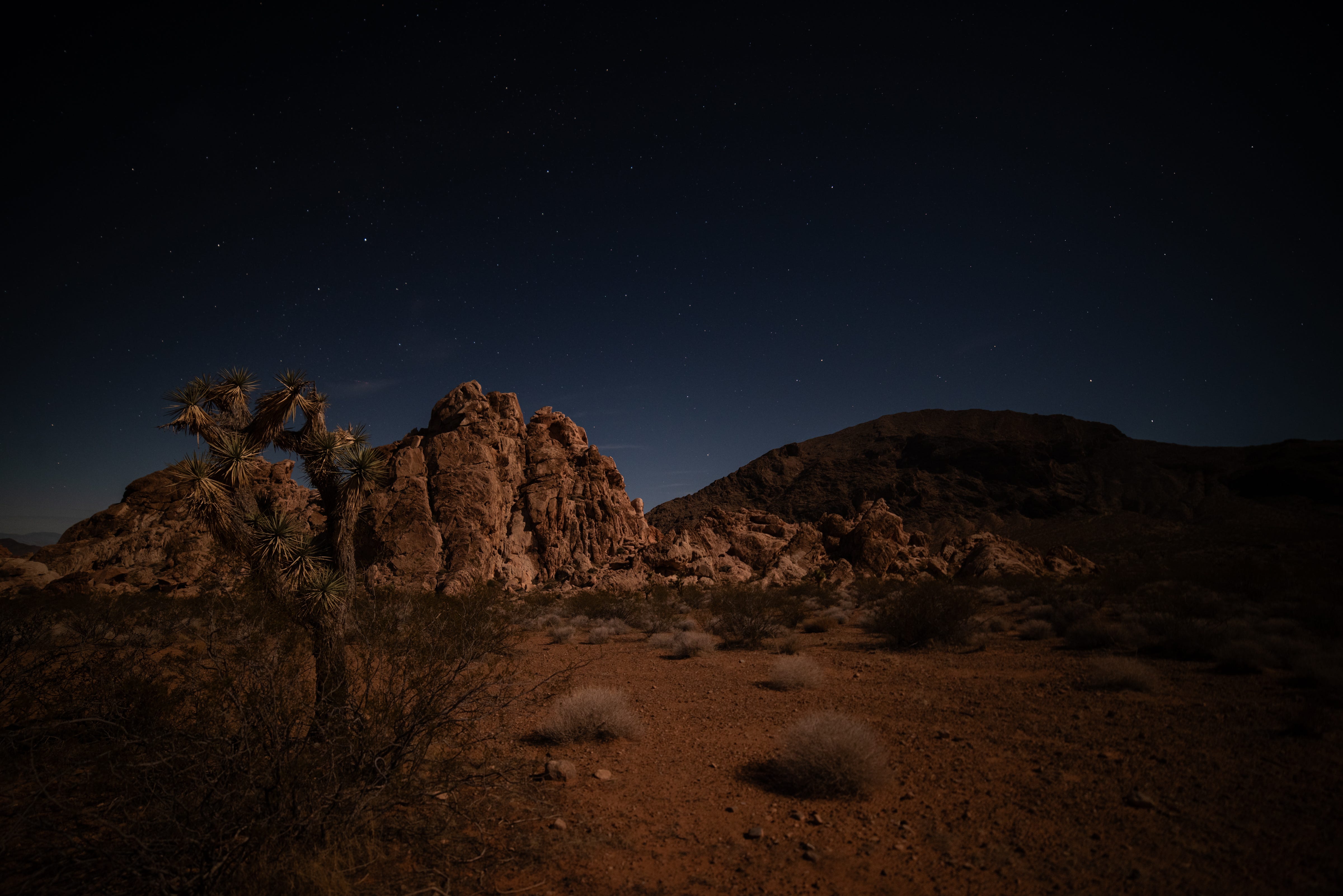There’s a loud, branch-crunching sound coming from a nearby wash. I walk toward it and find a large black cow staring back at me. Probably one of the famous Bundy stock — which means this big old slab of beef is foraging and dropping patties illegally in what I’ll come to see in the morning as a landscape brimming with biodiversity.